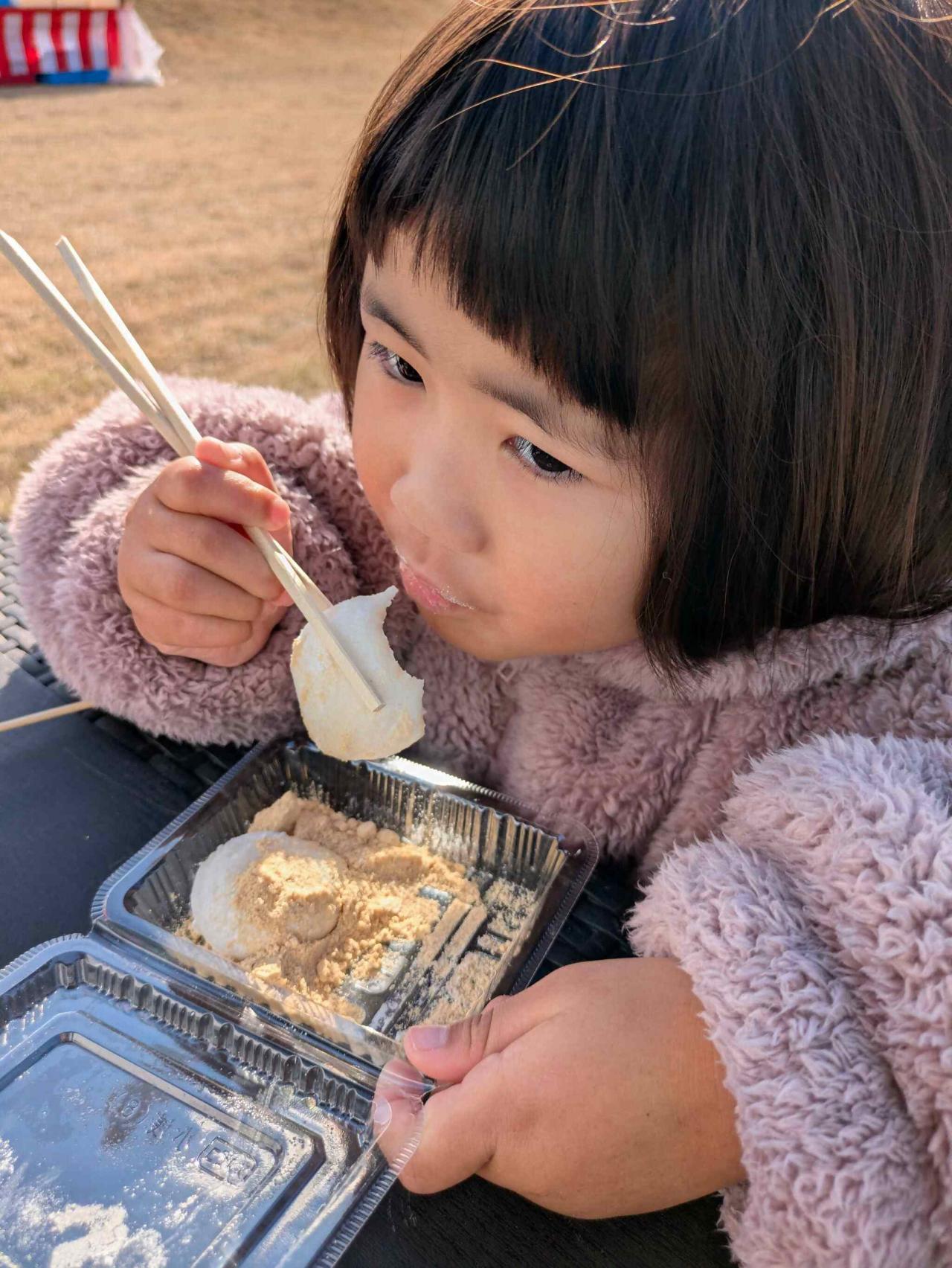 お餅も柔らかく外で出来立てを食べることが出来るのはイベントならでは。