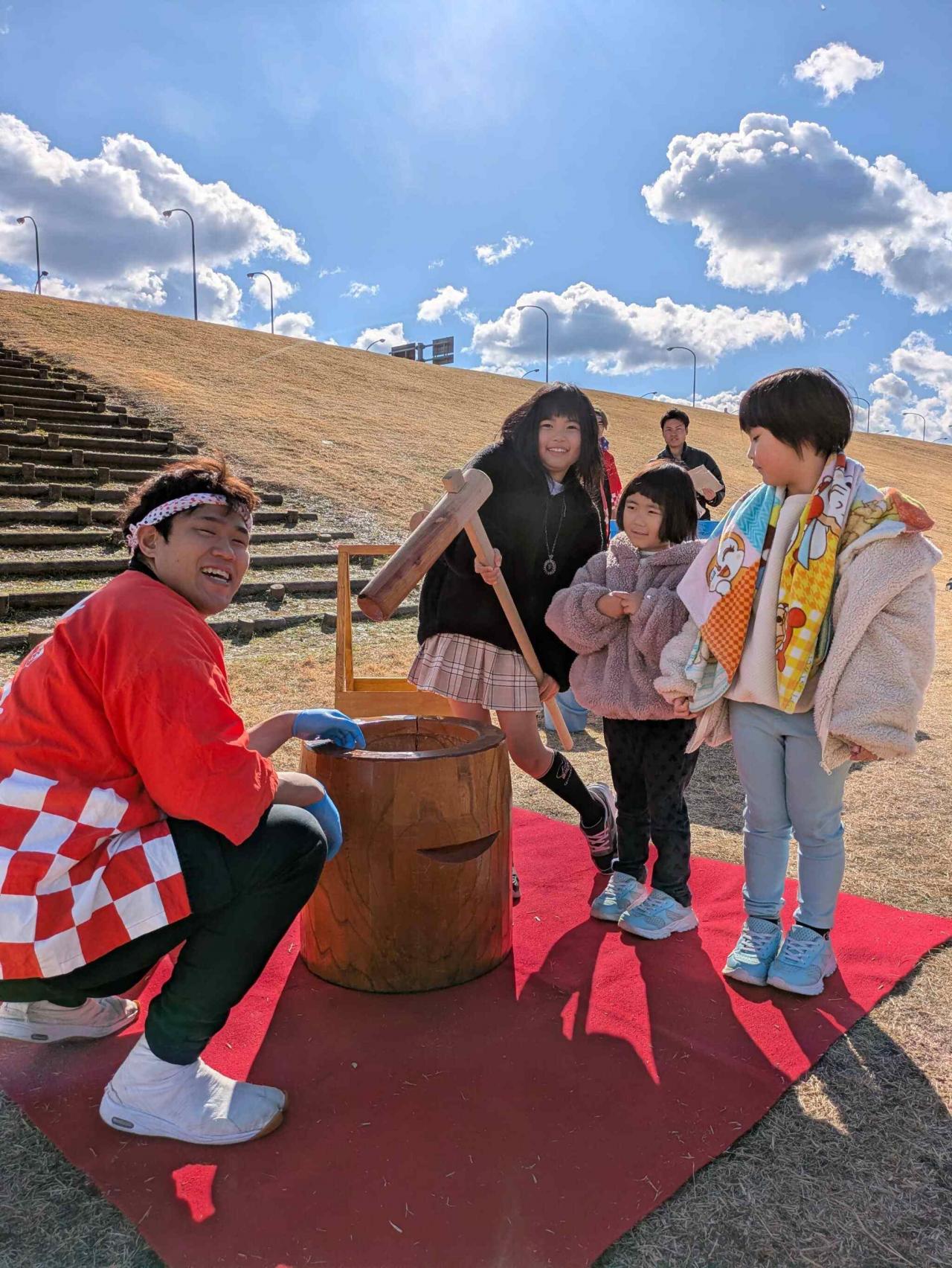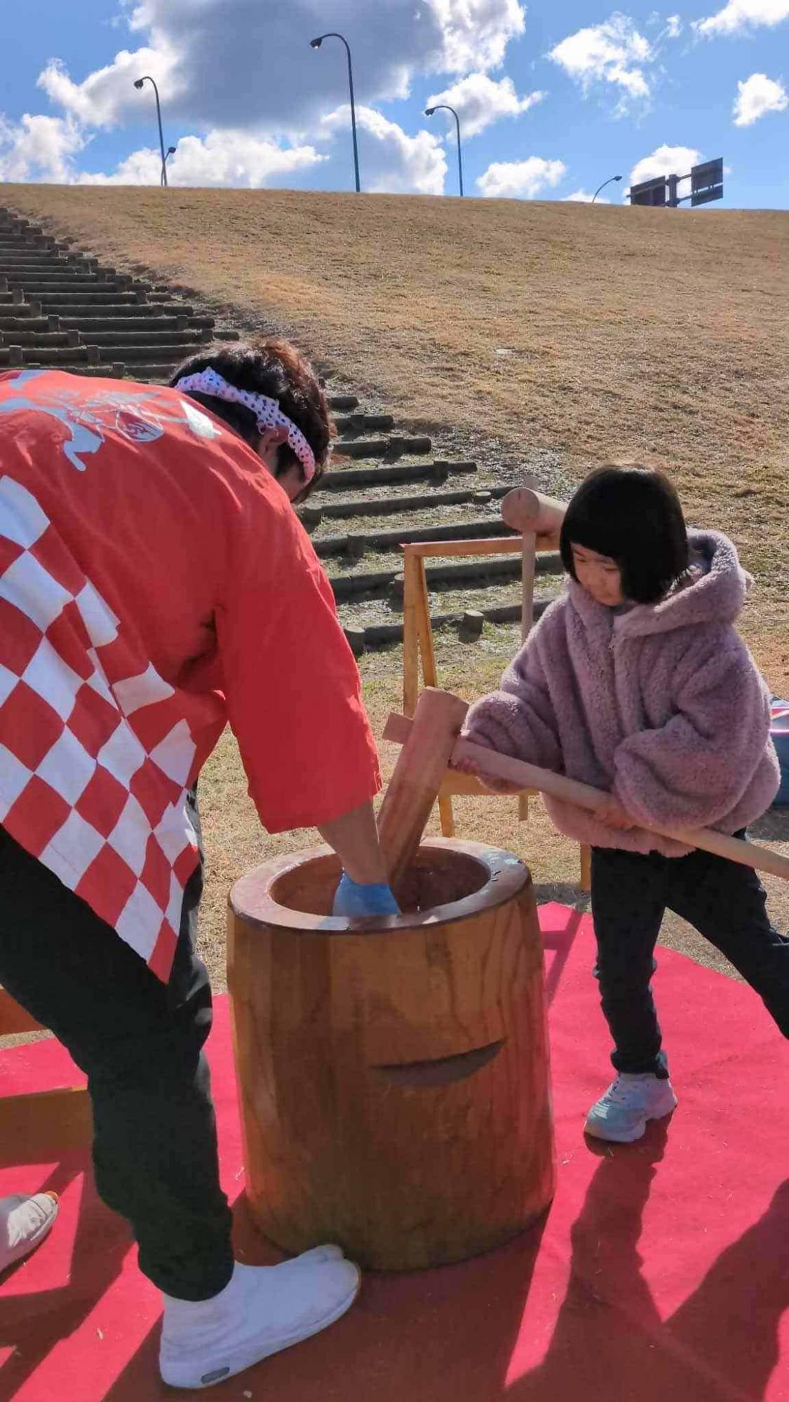 すでに数組並んでいて、「よいしょ」の掛け声とともに参加者のこどもたちがお餅をついていきます。