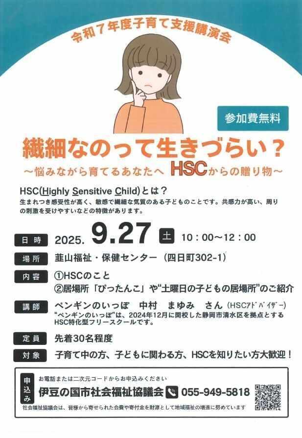 「HSC」の居場所が伊豆の国市にもできると、繊細さで困りごとを抱えているお子さんの支援につながると感じました。