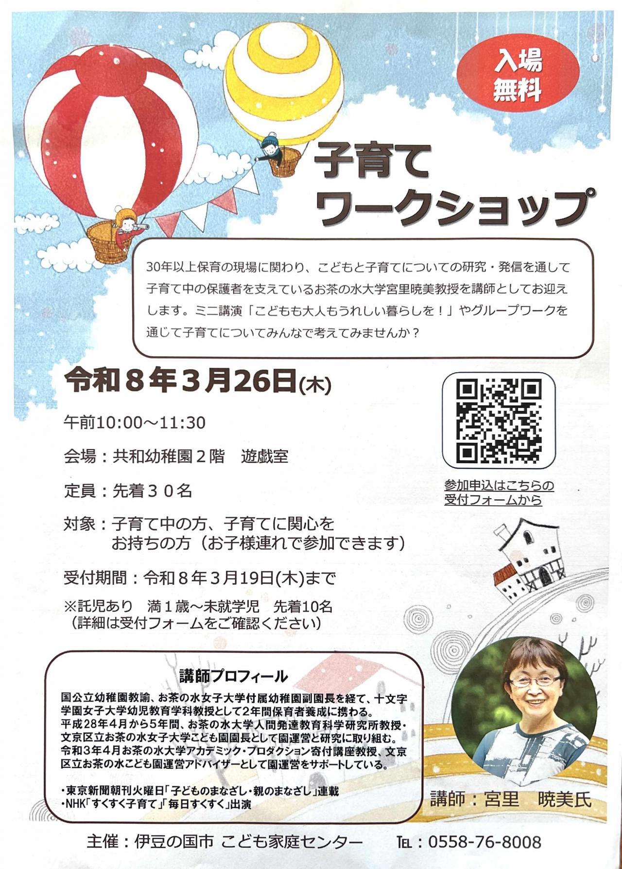NHK「すくすく子育て」でもおなじみ、こどものまなざしを温かく見つめる宮里暁美先生(お茶の水女子大学教授)をお招きして、子育てワークショップを開催します。