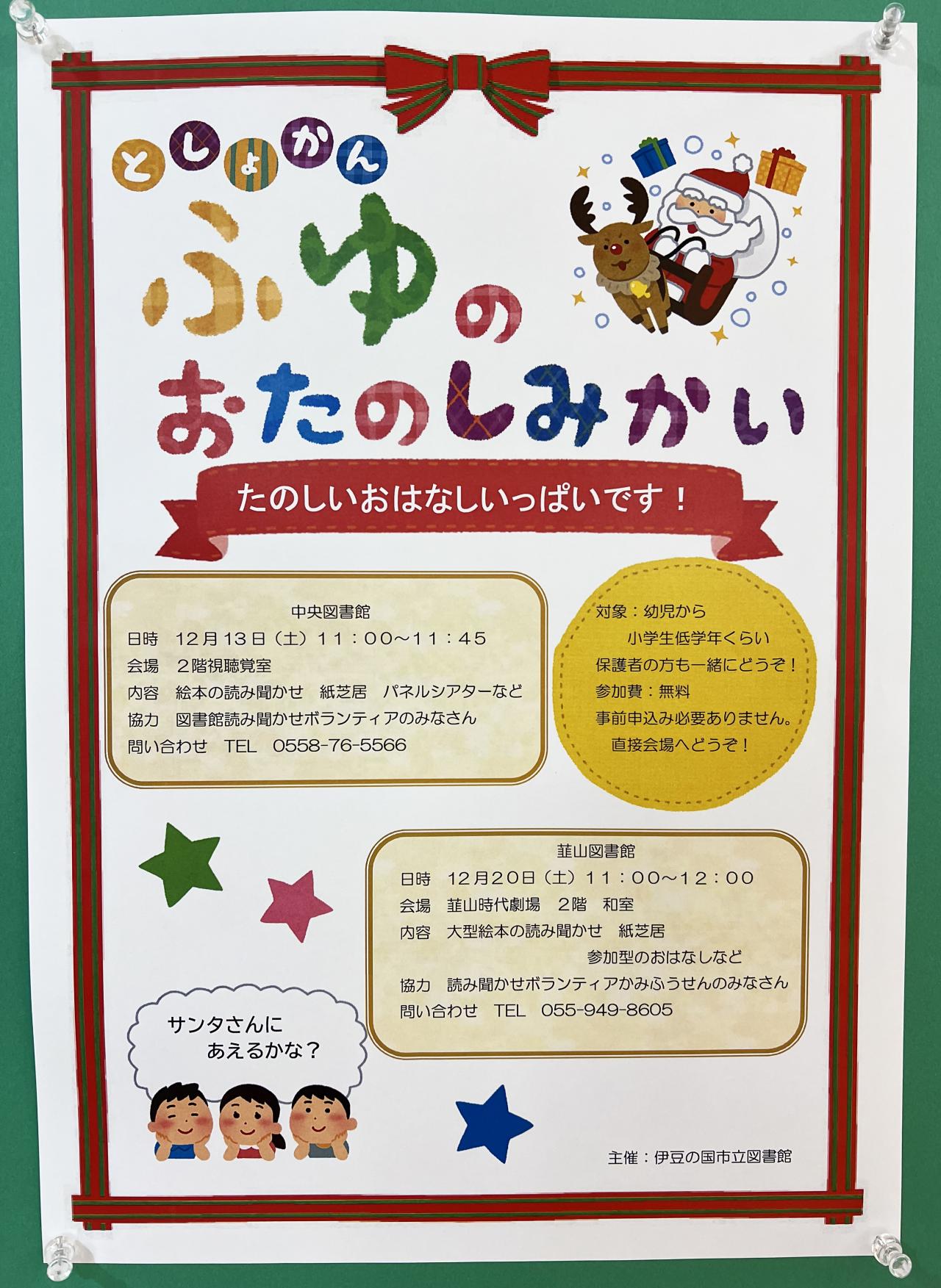 中央図書館と韮山図書館で、「ふゆのおたのしみかい」を行います!