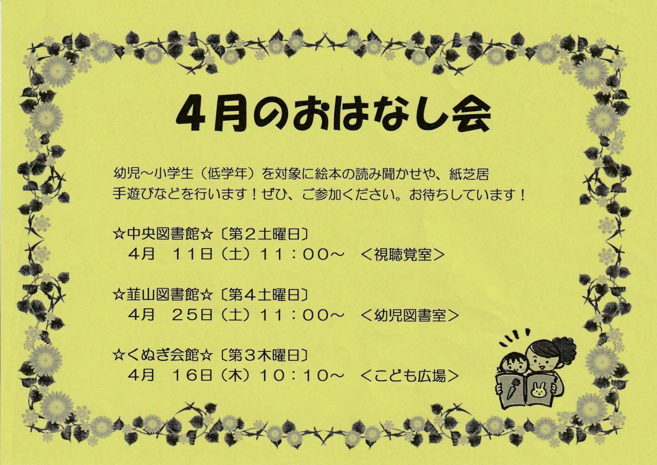 【幼児~小学校低学年】中央図書館4月のおはなし会