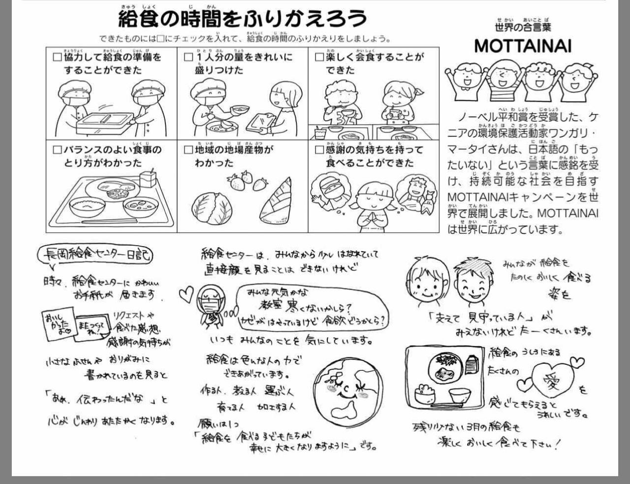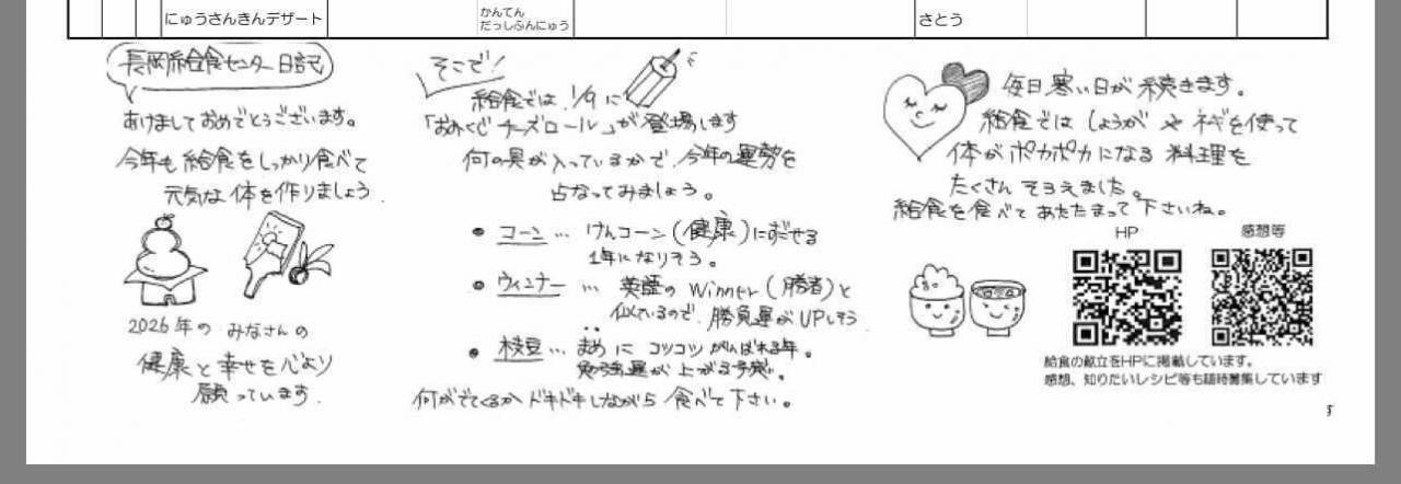 日吉先生をはじめとする栄養教諭の先生方による、手書きの「長岡給食センター日記」も載っていますよ!