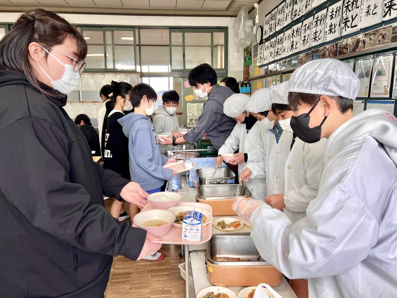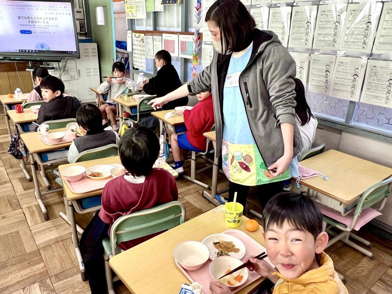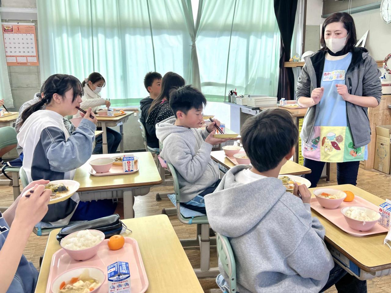 大人がイメージする「1人で食べる寂しい食事」など微塵もなく、教室には給食を囲んだ楽しい食事風景が広がっていました。